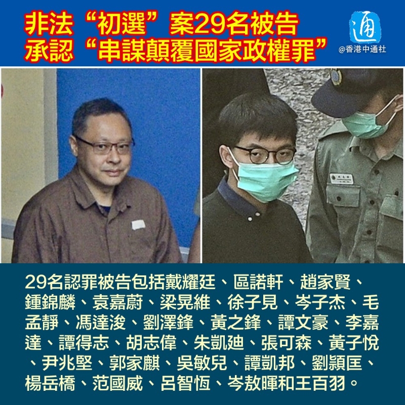 組織者為戴耀廷、區諾軒、趙家賢、鍾錦麟、吳政亨,餘下被告均屬參選者。其中戴耀廷是“初選”最早發起人及推動人,早於2019年12月透過在媒體撰文宣傳及游說他人顛覆國家政權。公民黨其後公開響應,將之對應“議會戰線”、“國際戰線”及“街頭戰線”。 “香港眾志”於2020年3月發起聯署,乞求美國制裁香港,黃之鋒曾揚言收集15萬個簽名交給美國駐港領事,又多次宣稱投入“國際戰線”。 “民主動力”為“初選”提供平台,透過網上眾籌平台籌348萬港元。參選者均獲派初選編號,并繳一萬元保證金予“民主動力”。 2021年1月6日,香港警務處國家安全處拘捕了55人,其中47人被起訴,被控1項串謀顛覆國家政權罪,面臨最高終身監禁的刑期。 案件立案後,曾遭到西方政客及媒體指責,稱警方國安處胡亂拘捕。 香港法學交流基金會執委會副主席、法學教授傅健慈對香港中通社記者采訪時表示,這一案件的核心被告已對控罪供認不諱,更顯示出西方反華勢力一直用抹黑香港法治和民主的方式,為“反中亂港”分子站台。 案件自去年3月1日首度提堂,經歷7次提堂、6次提訊日。值得注意的是,案件的核心人物戴耀廷,早在第三次提訊日就已認罪。 全國港澳研究會副會長劉兆佳分析,本次案件中,控方能够提出確鑿和有力的證據,使得被告相信沒有勝算,因此選擇認罪以減少損失。 傅健慈亦指出,首先認罪者確實有違法犯罪行為,其次在香港刑法體系中,被告認罪後,會獲減刑三分之一,如原本以9年為判刑起點,會扣減3年,加上後期求情,刑期會大大減少。因此越早認罪,對被告自身越有利。 至於不認罪的18人,傅健慈指,他們的律師仍可為其辯護;控方需要提供足够證據,證明被告有意圖犯罪,并符合有關控罪的所有犯案要素。法官也會依據法律規定和證據秉公辦理。核心人物認罪,并不會影響對其他人的審判,在量刑時,亦要參考法律規定的上限和下限。“由此可見,香港國安法和香港基本法明確保障香港市民的人權,沒有剝奪被告應有的律師辯護權,審判公平公正。” 審訊前一天,香港特區政府律政司司長林定國曾根據香港國安法賦予的權力,向高等法院原訟庭發出證書,指示初選案毋須設陪審團。西方媒體就案件不設陪審團大作文章,質疑審判變為儀式。 實際上,香港是在1845年引入陪審團制度,并沿用至今。基本法第86條明文規定:“原在香港實行的陪審制度的原則予以保留”。一般而言,陪審團僅適用於最嚴重的刑事案件,陪審團制度是普通法制度下的“傳統”,但不代表是公平審訊的唯一模式,無論是基本法還是香港任何現行法律皆未表明陪審團是公平審訊的必備要素。 香港國安法并非某些境外媒體所宣揚的絕對“禁止陪審團審訊”,而是就事論事,賦權律政司長可以在某些案件中不予設立陪審團。 根據香港國安法第46條,律政司司長可基於保護國家機密、案件具有涉外因素,或者保障陪審員和家人人身安全等理由,發出證書,指示審訊毋須陪審團。證書發出後,高院應當在無陪審團下審訊,并由三名法官組成審判庭。 外界普遍認為,此案結果是香港法治中維護國家安全的一則重案,將成為未來同類型案件的標桿。 劉兆佳表示,此案控方得勝,既有助於樹立相關法律的威信,震懾蓄意危害國家安全的反中亂港分子,亦有助於在香港社會推廣國家安全教育,維護國家安全和香港穩定繁榮。 與過去的“習慣性譴責”不同的是,這一次“初選”案被告主動認罪,當初為他們撐腰、揚言“不會袖手旁觀”、“同他們站在一起”、呼籲“不必擔心逮捕的”的西方政客們,沒了聲。 【編輯:陳卓儀】