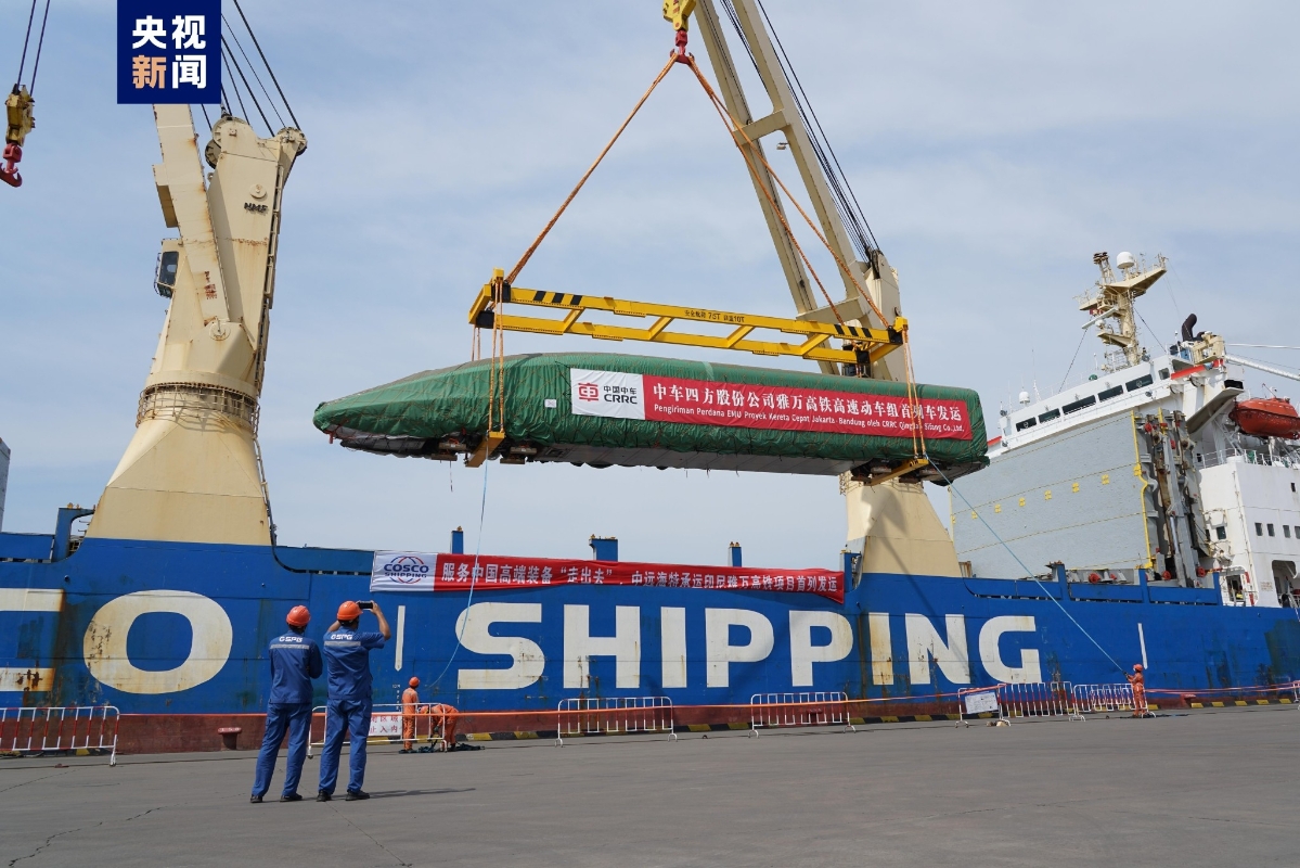 雅萬高鐵裝船 圖源:央視新聞 據了解,雅萬高鐵是“一帶一路”建設和中國、印尼兩國務實合作的標志性項目,也是中國高鐵首次全系統、全要素、全產業鏈在海外建設項目。雅萬高鐵高速動車組和綜合檢測列車,由國鐵集團所屬中國鐵路國際有限公司牽頭,中國中車旗下四方股份公司設計製造。 【編輯:王軼南】