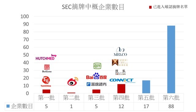 128家中概企業被列入摘牌名單。(資料來源:SEC網站、香港01製圖) 上周五間中國大型央企包括中人壽、上石化、中石油、中鋁及中石化相繼宣布從紐交所退市。其中,中國人壽的公告稱最後一個交易日可能不晚於9月1日,而華能國際和滴滴出行已經完成從美國退市。早前阿里巴巴也已表態,會將第一上市地點由美國轉至香港,中概股全面退市潮一觸即發。 中概股退市風波突顯香港“避風港”定位 在此番中概股退市風波之下,出於風險管理,大部分中概股已經開始積極尋找備選上市地,回流香港上市的企業增加。先前大多數中概股回香港選擇的是二次上市方式,今年以來,雙重主要上市成為中概股回港趨勢。 和合首創(香港)執行董事陳達表示,“選擇雙重上市有一項重要優勢,就是可以進入港股通”,納入港股通後,可以得到更多內地投資者支持,股票流動性會得到極大加強,內地投資者也能分享企業成長紅利。 有專家分析,作為國際金融中心的香港,更加突顯“避風港”的關鍵作用。 一方面,香港能強化“避風港”功能。香港資本市場互聯互通制度,為“退市風險”提供優質而順暢的緩衝選擇。另一方面,香港可扮演“築橋者”的角色。香港有着與西方接軌的監管法制和金融聲譽,有助國家改革開放金融市場,以消除西方世界誤解。 工銀資管(全球)固定收益投資部副主管溫凡表示,“中概股風波不是一個損失,而是一個結構性的機會,香港要抓住這個機會。”(完) 【編輯:王軼南】