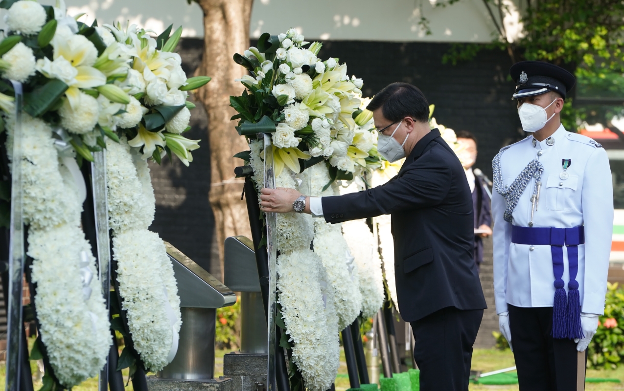 香港中通社9月3日電 9月3日是中國人民抗日戰爭勝利77周年紀念日。特區政府當天上午在香港大會堂紀念花園舉行官方儀式,紀念中國人民抗日戰爭勝利。 行政長官李家超和政府高層官員、各界人士出席儀式。紀念儀式包括奏唱國歌、升旗儀式、警察步槍儀仗隊鳴槍致敬、全體出席者默哀及鞠躬致敬。