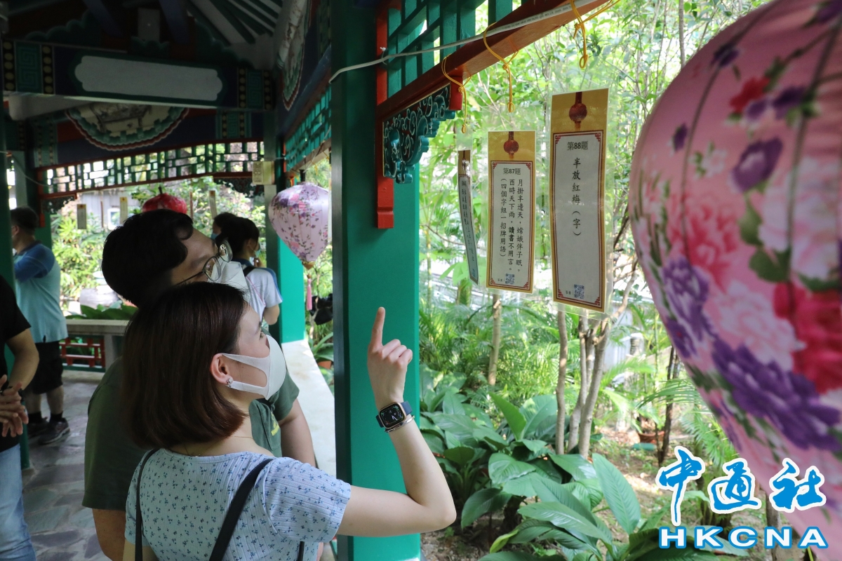 香港化身炫彩之城 花燈遊園盡顯中秋韻味香港新聞網9月10日電 中秋之夜,月明星稀,良辰美景不可辜負,中國人向來喜歡燃燈助興。唐宋時期賞燈活動更甚,始有中秋燈會,闔家歡聚賞燈,共享天倫之樂的習俗延續至今。 在香港,中秋時節,一向香火鼎盛的嗇色園黃大仙祠燈燭搖曳,遊人如織,或是好友成群,或是扶老㩦幼,前來感受每年中秋例行舉辦的花燈園遊會。今年園遊會則在8日舉行開幕典禮,並限制入場名額,而從9日起,一連三天開放予公眾參觀。 “她吃下仙藥,飛到天上去,再也見不到後裔。”香港中通社記者在開幕當日晚上走進黃大仙祠看見,兩個孩子站在呈現民間傳說嫦娥奔月的燈飾下,媽媽正講述著中秋節的傳說,“自此團圓成為企盼。” 祠內播放著中國古樂,而豎柱上梁、財神宮廣場、園林走道上,都掛有不同造型的彩燈,鳥獸燈、錦鯉燈、盤羊燈、小紅燈數之不盡,也有孔明燈寫上中秋心願:“有求必應”“四時無災”“幸福安康”,都是疫下三年来,市民所思所念。 園遊會上,一對老夫婦被燈謎吸引了眼球,“一間房子三個門,裏面只住半個人,猜猜是什麼。”老太太指著燈謎卡問丈夫,老頭兒笑而不語,拿起手機為太太拍照紀念。 另一邊,有一家四口在橋下紀錄溫馨時刻,祠內燈影為他們披上一層暖光;穿漢服前來的幾位女大學生手上提著花燈,在財神宮外留下倩影。