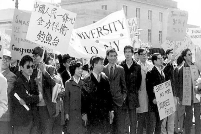 1971年美國華盛頓保釣遊行 香港教師、學生也快速組成“香港保衛釣魚島行動委員會”,發動學生上街示威,指控美日勾結。遊行示威的規模越來越大,台灣地區各大學學生社團也踏出校園,前往美日機構遊行抗議。90年代,香港和台灣民間也多次組織保釣行動。1990年10月28日,1.2萬名香港市民參加保釣集會和遊行。1996年,陳毓祥等港人隨保釣號貨輪抵達釣魚島海域,多次被日本艦艇與軍機圍追堵截,最後跳海示威向釣魚島游去,陳毓祥遇溺身亡。陳毓祥的逝世激發港台兩地的保釣行動。