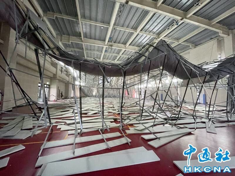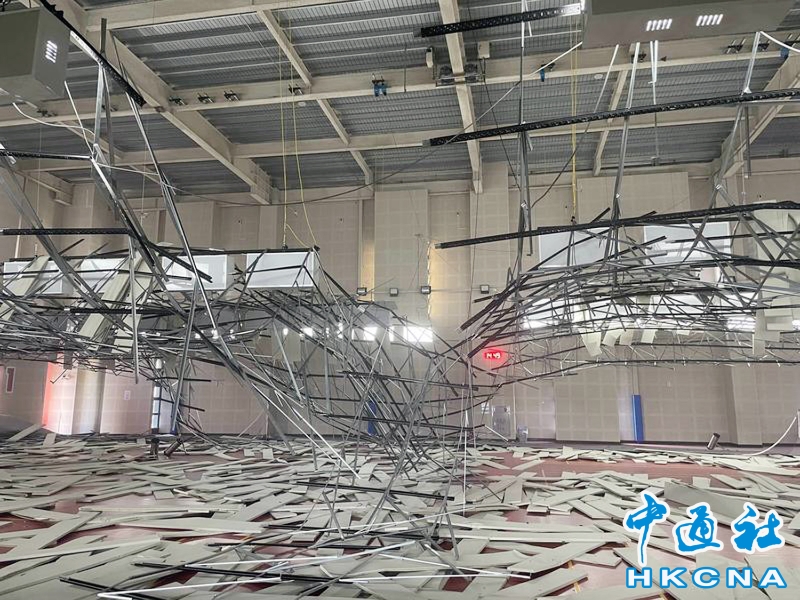 •   台灣9月18日14時44分台東池上再發生規模6.8地震各處傳災情;桃園八德運動中心羽球場昨天才完成燈光改善工程,才剛掛上的羽球燈全數掉落在地上,輕鋼架和天花板也都坍塌,9月18日下午就隨著強震掉落,砸傷一名男子。 香港中通社圖片