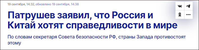 塔斯社關於中俄安全磋商報道截圖 他指责西方试图将自己的“伪价值观”强加于世人、奉行分而治之的原则,损害世界各国人民利益。 帕特鲁舍夫认为,中俄“应定期沟通,在最紧迫的国际问题上及时协调立场、加强外交政策协调。” 他强调,在当前的国际形势下,“与中国发展战略伙伴关系是俄罗斯外交政策的无条件优先方向,得到两国人民的广泛支持”。(完) 【編輯:王軼南】
