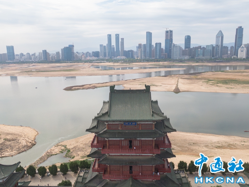 •   9月22日,航拍贛江南昌河段大面積河床裸露。當日,江西省水文監測中心發布乾旱橙色預警,預計未來一段時期內鄱陽湖水位繼續走低,贛江南昌河段維持低水位。 香港中通社圖片