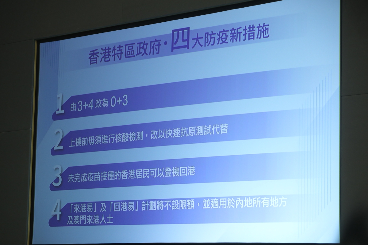香港醫務衛生局局長盧寵茂 (香港中通社記者 謝光磊 攝) 有人滿意,也有人不滿。選擇優先與世界"通關"的香港,將如何應對與內地全面通關的需求? 行政長官李家超重申,與世界接軌和與內地“通關”並不矛盾。香港保護高風險人士等政策與國家防疫目標一致。希望在管控疫情時,給予最大空間與世界接軌,恢復經濟動力。政府抗疫路徑以單一方向為目標,不希望走回頭路,特區政府對疫情走勢保持正面態度。 特區政府的這一步,回應了各界訴求。不少分析認為此措施將大力提振本地經濟,也將吸引此前因防疫政策暫時離開的國際企業和優秀人才。 (香港中通社記者 付鈺) 香港大步向前的背後,實際上背負著壓力。 一方面,壓力來自於內部。 近日,香港社交媒體流傳一張“香港四大奇跡”的圖。這些“奇跡”分別為:“大橋No cars,碼頭No ships,機場No planes,高鐵站No trains”。雖有些誇大其詞,但也呈現出香港市民對疫情下現實和未來的憂思。 另一方面的壓力則來自於外部。 英國智庫Z/Yen與中國發展研究院編制的“全球金融中心指數”(GFCI)最新排名顯示,香港由第三位元降至第四位,新加坡則連升三級,超越香港排第三。報告明確指出,香港“受持續旅行限制,影響開展正常業務的能力”。 有觀點認為,受疫情影響,香港經濟民生及優勢產業正處於一種“內憂外困”中,各種信號警燈高頻亮起,愈加奪目刺耳,已經觸及到香港安身立命、競爭發展的要害處。 不過也正因處於“內憂外困”下,讓香港特區政府意識到,需要根據自身情況調整防疫政策。正如全國人大常委譚耀宗所說,香港需要循序漸進,不能太遲放寬入境限制。 (香港中通社視頻記者 吳煒鑫) 除了壓力,香港大步向前的背後,也離不開中央的支持。 9月20日,國務院港澳辦副主任黃柳權在中宣部舉行的“中國這十年”系列主題新聞發佈會表示:新一屆特區政府上任以後多次強調接軌世界與和內地通關並不矛盾。特區政府也根據香港疫情和全球疫情變化情況與香港的實際情況,統籌疫情防控和經濟社會發展,因時因勢調整和優化香港的疫情防控措施。特區政府做的這些調整無可厚非,也不需要去過度解讀。 不過,“放寬”並不等於“放鬆”。 香江智匯會長周伯展醫生從醫學角度向香港中通社記者指出,疫情風險難以量化,政府必須要嚴密監測,根據疫情發展調整防疫措施。 正如特首李家超多次強調的五大防疫政策:不躺平,控制確診數位,確保醫療體系的負荷力;減重症,減死亡;保護高風險人士,包括“一老一幼”及長期病患者;以科學精准識別不同風險級別人士;平衡風險與經濟動力。 放寬入境政策後,經濟活動必然也更活躍,冬季來臨前,防疫更不可鬆懈。 今日滿屏的“0+3”消息為香港帶來疫情向穩的思考,大家都盼望著隔離成為往事,酒店檢疫成為歷史。 【編輯:王瑶】