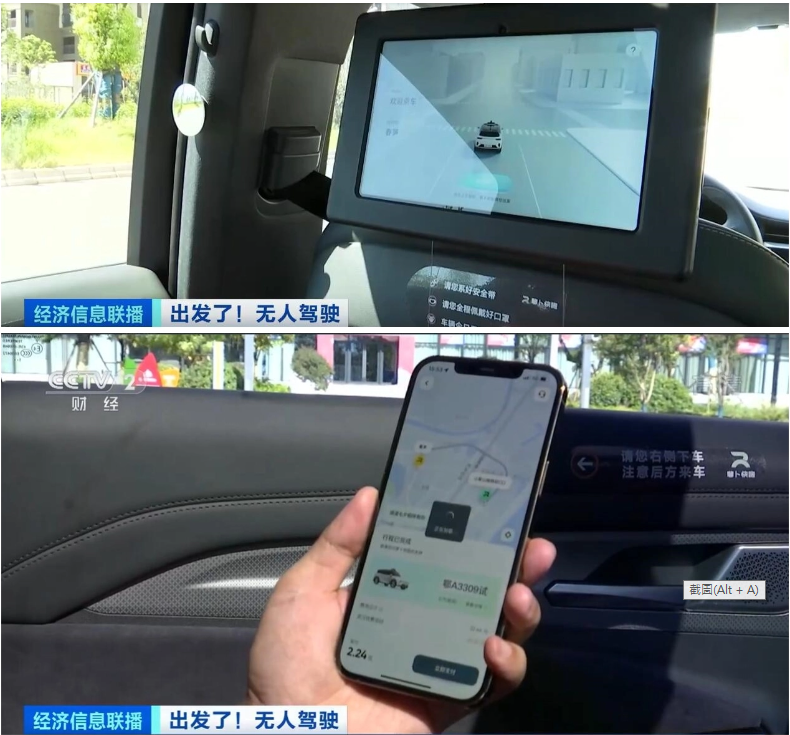 無人自動駕駛乘客視角 圖源:央視新聞 在北京經濟技術開發區,民眾可以打開相關手機App輸入起點和目的地,點擊“呼叫車輛”。系統根據算法選擇最近車輛,幾分鐘后自動駕駛出租車就能到達停車點。在行駛途中,乘客可以通過車載屏幕看到實時路況,道路上的車輛、行人都以三維形象呈現。到達目的地后,乘客待車輛平穩停下即可下車。
