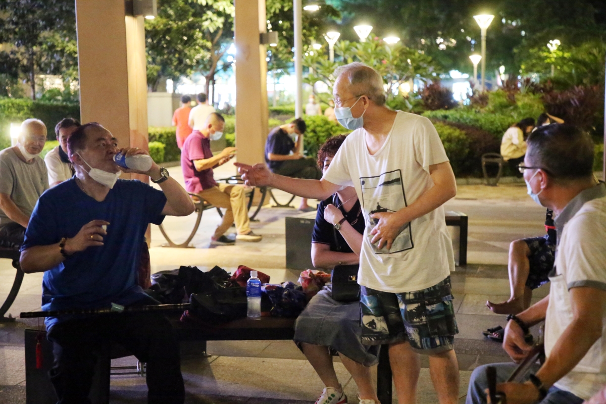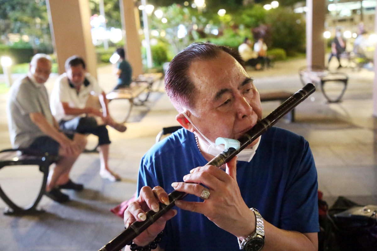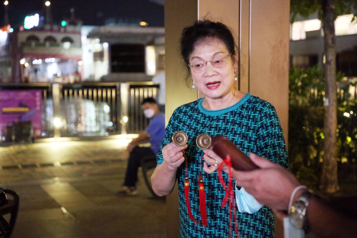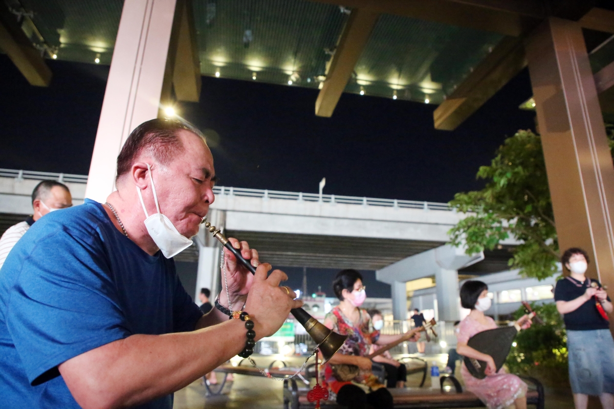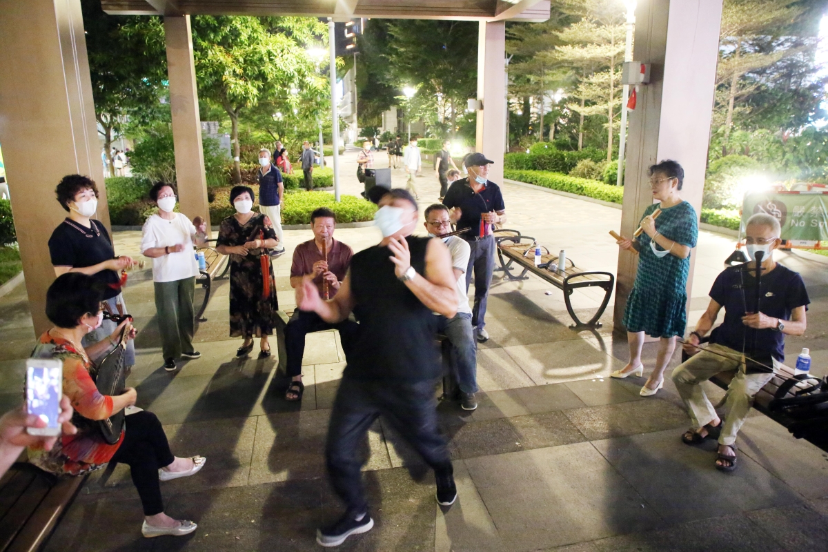香港新聞網10月4日電 (記者洪少葵圖文)入夜,香港北角匯休憩处熱鬧騰騰,一陣陣古樂裊裊飄來,優雅“南音”音律吸引不少路人駐足欣賞。10月3日晚,南音彈唱召集人曾順昌先生向記者介紹,彈奏南音的樂手都是來自閩南一帶的居港老鄉,10幾年前就因為愛好南音聚集一起,常年在北角碼頭一帶彈彈唱唱,不亦樂乎。近年來,疫情肆虐期間,大家只能待在家裡自己練習。近日,香港疫情放緩,難得大家又可以聚在一起合奏練唱,拉近街坊鄰里關係,一解鄉愁,心情很是興奮。曾先生說,“在傳播中華傳統文化同時,很希望得到政府有關部門的關注,能提供場地和支持,令這項傳統音樂能够傳承下去”。南音是閩南人的生活中不可缺少的最愛之一,有“拳頭、燒酒、曲”之說,指練武、喝酒和聽南音。