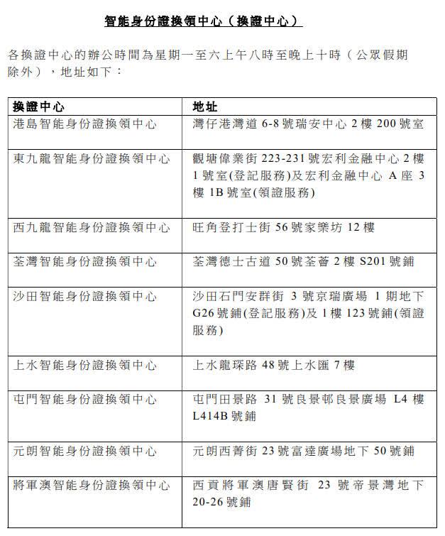 換證中心地點(香港特區與政府新聞處)