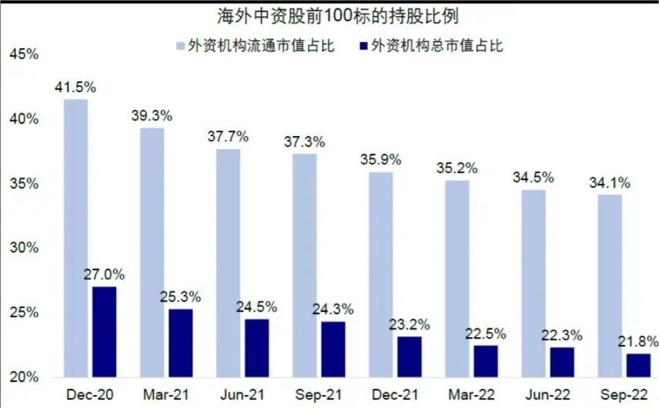 中金認為此輪資金流出可能受美聯儲激進加息導致的全球金融條件收緊和部分基金削減配置綜合影響。此外,港股賣空成交比例也持續走高,空頭頭寸也明顯抬升。從持股和籌碼看,自下而上匯總的機構投資者季度持倉數據顯示,三季度海外機構持倉比例有所下降。
