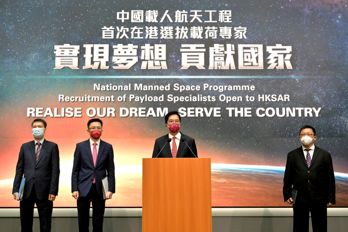 香港特區財政司副司長黃偉綸就中央首次在香港選拔載荷專家會見傳媒。 香港中通社圖片 負責跨局協調及宣傳教育這次載荷專家選拔工作的特區政府財政司副司長黃偉綸27日表示,今次選拔反應熱烈,詳細情況由創新科技署作適當公佈。 各大學與研究機構反應熱烈 載荷專家招募要求申請人具博士學位及至少3年研究經驗,多所大學大力支持校內研究員參與這項國家建設計劃。 香港中文大學申請人的專業範疇包括物理、地理、醫學及工程等,如有中大研究員初選入圍,校方將按照特區政府指引為他們提供適切支援。 香港理工大學表示,理大學者對載荷專家選拔反應熱烈,其中不乏符合條件的年輕至資深研究人員,並帶動科研學者和學生對航天領域研究和學習的濃厚興趣。校方會繼續加強航天科研和教學,積極參與國家探索太空的任務,期望為國家航天科技事業發展作出新貢獻。 香港城市大學表示,已向全體教研人員及研究生發送有關載荷專家選拔消息,目前接獲研究與教學人員的報名參加相關選拔,男女比例各占一半。 這個報名者想養“太空蟹” 載荷專家將參與國家載人航天工程的重要任務,候選對象須為香港特區永久性居民中的中國籍公民,擁有博士學位,實際從事相關專業工作時間不少於三年,今年31歲的港產博士郝小添正好過線。