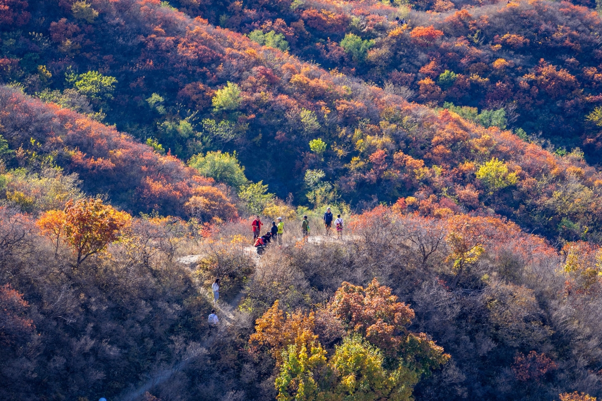 香港中通社北京10月30日電 (特約記者 莊恭百)霜降節氣後,北京香山紅葉迎來最佳觀賞期。山中的槭樹、黃櫓、銀杏紅黃綠三色層叠,絢爛多彩,香山由此成為不少北京民眾熱門打卡地。