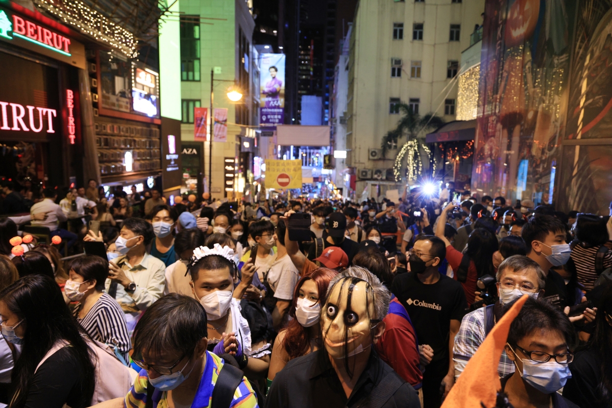 通說:慎入:萬聖夜的蘭桂坊韓國首爾梨泰院迎接萬聖節的活動發生大型踩踏事故,造成最少154人死亡,震驚全球,遇難者還包括4名中國人。 作為中西文化薈萃的香港也有慶祝萬聖節的習慣,梨泰院踩踏慘劇發生後,中環蘭桂坊依舊非常熱鬧,市民似乎並未受到新聞影響,還有人說“很安全不擔心”。 10月31日萬聖夜,盡管是工作日、香港也掛起三號風球,但蘭桂坊喧囂依舊。