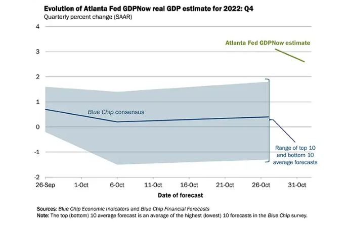 亞特蘭大聯儲表示,在美國9月營建支出月率和10月ISM製造業PMI數據公佈後,美國第四季度實際個人消費支出增長的近期預期從3.7%下降到2.9%,被第四季度實際私人國內投資總額增長從-1.6%上升到-1.3%輕微抵消。這一模型此次預估是從美國第三季度GDP數據發佈開始的,隨着新季度的數據開始累積,這些估值可能還不穩定。(完) 【編輯:錢林霞】