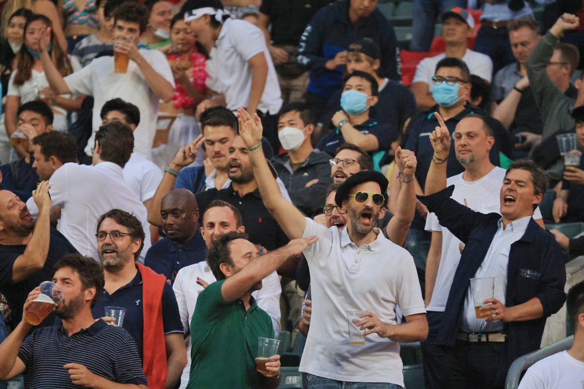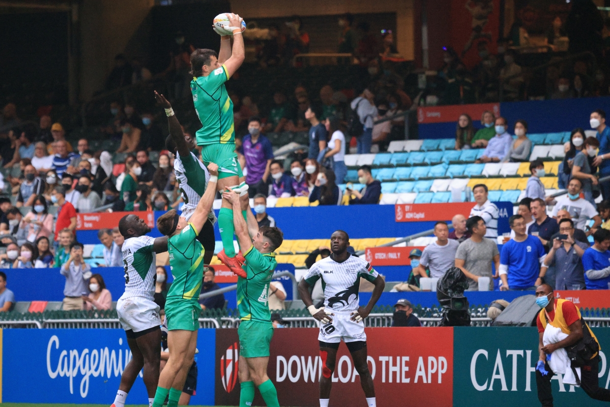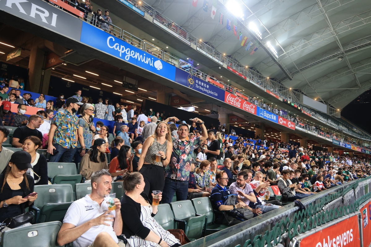 香港中通社記者 許其皓 攝 始於1976年的香港國際七人欖球賽,是全球球迷引頸以待的頂級球賽,也是香港一年一度的盛事,吸引眾多海外遊客專程來港觀賞。 新冠疫情首次有多支海外隊伍來港,這一場大型體育盛事吸引各地球迷入場,甚至有球迷不辭辛苦專程從海外來港。