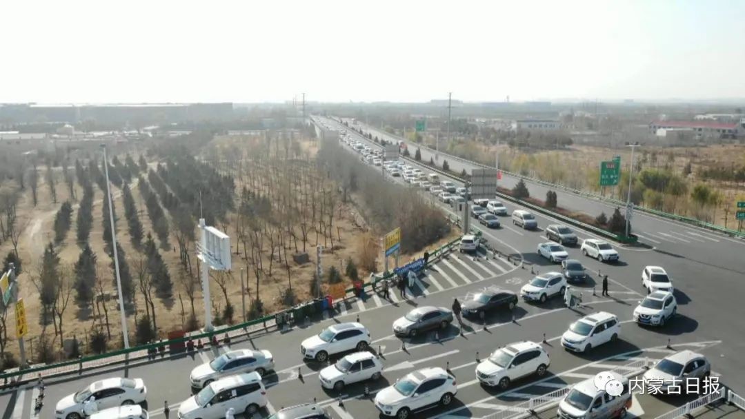 11月5日,呼和浩特東出口等待出城的車輛。圖源:內蒙古日報