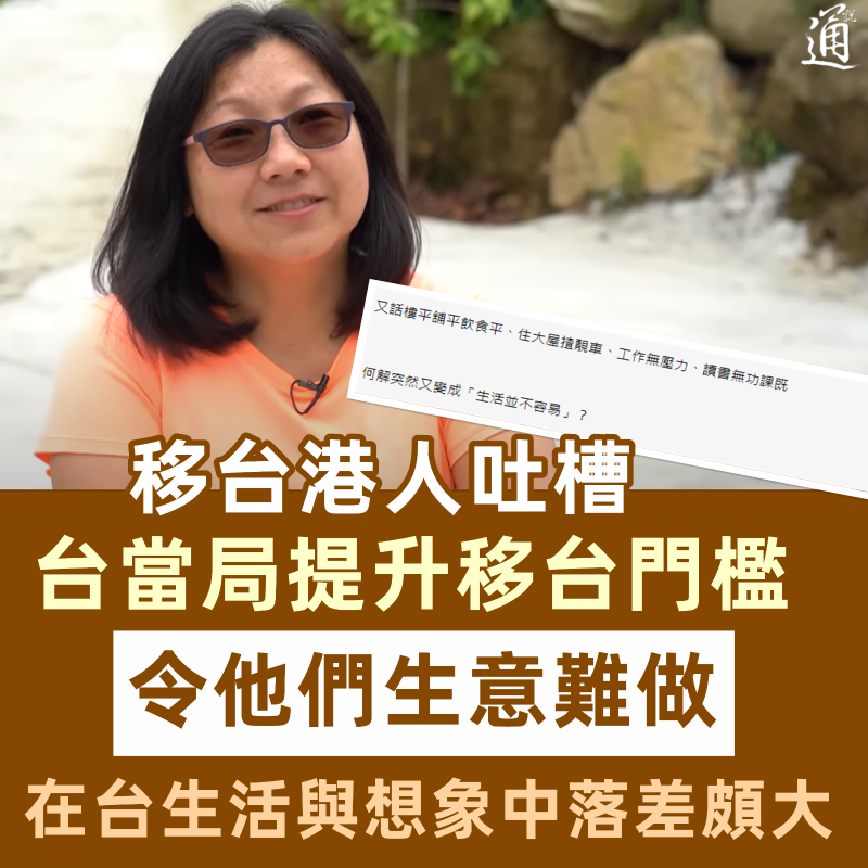 香港新聞網11月7日電 近年,部分香港人選擇移居至文化相近、擁有所謂“自由民主”的台灣。未料抵台後他們卻發現,在台生活與想象中落差頗大,並於節目上吐槽台當局政策“多變”,令他們生意難做,倍感壓力…… 近日,台灣節目“誰來晚餐”訪問了港人鄒先生一家五口。他們聲稱為了減輕“生活壓力”,於2017年從香港移居到台灣,其後在台灣開設移民公司,專做香港“同路人”移台生意。 據悉,鄒太太原本在香港從事IT行業,鄒先生則是做露營導遊。抵台後,他們原本經營帶團露營業務,但發現台灣的營地生態“與香港大不相同”,適應不了的二人判斷老本行在台灣難進行下去。 隨後,二人把目光瞄準想要移台的“黃絲”群體,在就讀移民課程約半年後,開設了一家移民公司。對著鏡頭,鄒太太坦言40歲還要在台灣創業“是很難的“,加之還要照顧家人,生活令她覺得十分吃力。 同時,鄒太直指近來台當局審批港人的移民申請越發嚴格,“生意越來越難做”,收入非常不穩定。 據悉,台當局於2021年8月修正《香港澳門居民進入台灣地區及居留定居許可辦法》,增加諸多限制,令港人移台條件愈發嚴苛。鄒太表示,有港人抵台後等待兩年之久才成功取得台灣居留權。而事實上,越來越多的香港人根本等不及兩年已經無奈放棄…… 由於台當局政策的“飄忽不定”,他們的移民公司難獲得穩定的財源,“生活壓力越來越大”。為了維持生計,鄒太不得不拓展副業,包括代購蛋白飲品和曲奇餅到香港…… 除了收入上的壓力,移台港人似乎亦不能很好地融入和適應台灣的生活。鄒太就坦言對島內食物不感興趣,“一家人很少外食”,目前仍堅持從香港代購食材做飯煲湯。 “台灣很多東西都是炸的,到夜市吃東西也吃不飽。”鄒太在節目上抱怨道。 而台灣人的社交習慣也令移台港人“頂不順”。夫婦二人直言接觸了不少台灣人,他們一上來就會問些私密問題,如“你多少歲”、“收入多少”等。二人認為這些問題在香港只有交心的朋友才會問,因此社交圈子目前仍局限於在台港人內部。 台灣的辦事效率也遠不及香港!在節目上,鄒先生還忍不住吐槽,每次去台灣銀行辦業務都要跑好幾趟,不是要補材料,就是櫃員忘記簽名。 或許是自覺“吐槽”台灣的內容太多,移台港人夫婦以及節目來賓、香港“黃絲”藝人杜汶澤之後又為台灣找補稱,效率低即意味著萬事都有“商量”的餘地,認為台灣多了香港沒有的“人情味”。