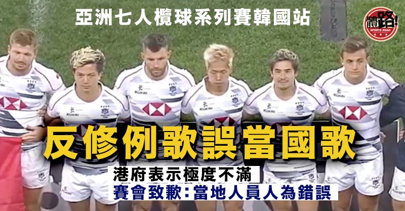 韓國七人欖球賽在港隊賽前錯播中國國歌 圖源:體路 特區政府文化體育及旅遊局指,亞洲欖球總會已向香港欖球總會致歉。他們確認香港代表隊教練提交的國歌錄音正確無誤,並解釋事件是由當地主辦機構一名初級人員的人為錯誤所致。主辦機構在賽事完畢後,已在場館內公開致歉,並在香港隊在贏得此站冠軍後出席的頒獎禮上播放正確的中國國歌。 【編輯:王軼南】