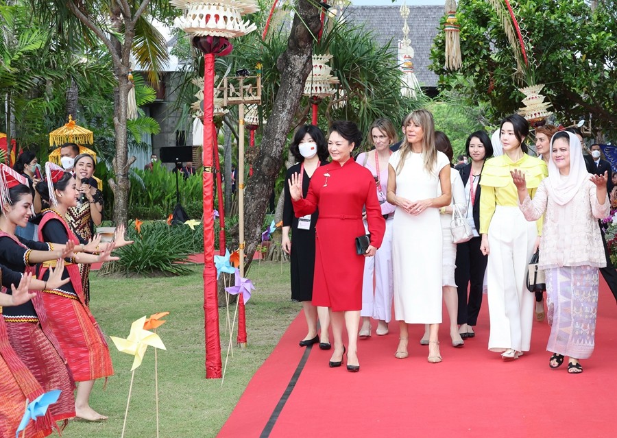 香港新聞網11月16日電 據新華社報道,當地時間15日上午,中國國家主席習近平夫人彭麗媛在巴厘島出席印度尼西亞總統夫人伊莉亞娜組織的二十國集團領導人第十七次峰會領導人配偶活動。