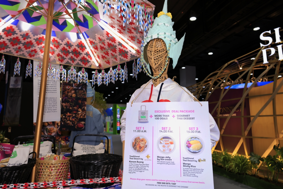 APEC會場設置攤位展示泰國傳統文化及綠色生活願景。(曹文毓攝)