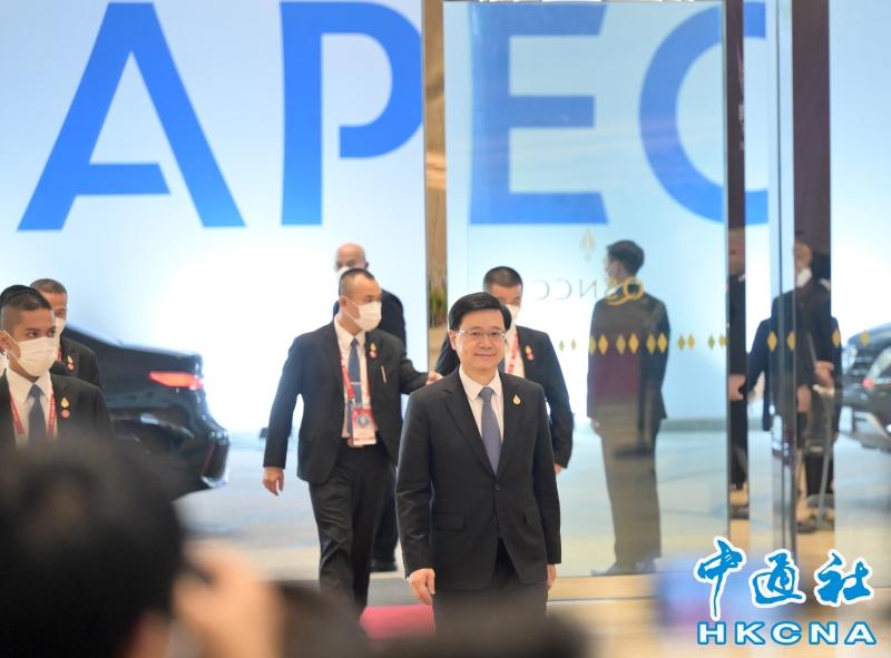 香港中通社曼谷11月18日電(記者 陳卓儀)香港特區行政長官李家超18日在泰國曼谷出席亞太經濟合作組織(APEC)領導人非正式會議,與其他經濟體領導人就應對貿易和投資壁壘、推動強韌的供應鏈、加強聯繫,以及深化經濟與科技合作等議題交換意見。