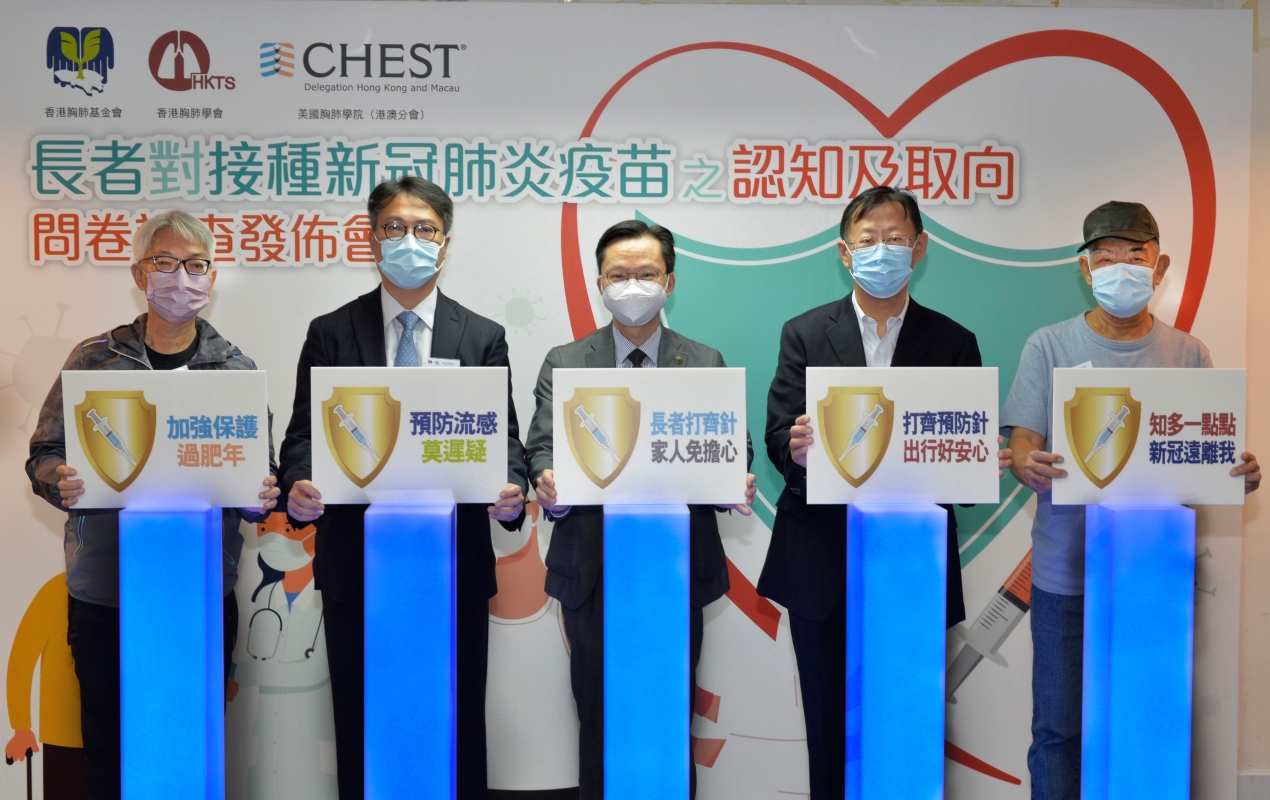 主辦方提供 香港胸肺基金會、香港胸肺學會、美國胸肺學院(港澳分會)今年10月17日至11月11日期間,線上線下進行了“長者對接種新冠肺炎疫苗之認知及取向”問卷調查,成功訪問1027名60歲以上長者。 【編輯:崔靜雯】
