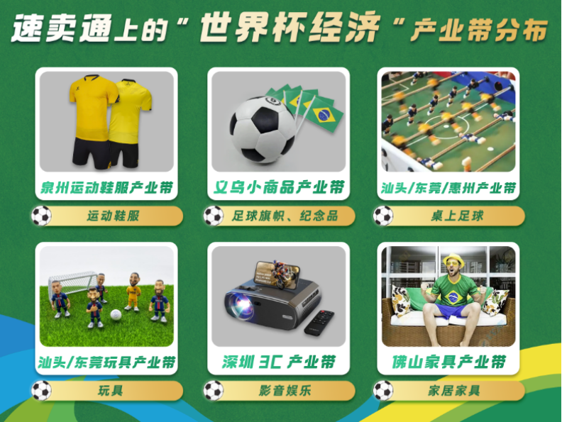 圖源:速賣通 電商——中國采購 阿里巴巴國際站作為全球采購跨境電商平台,更早一步觀測到全球消費動向。“世界杯采購”是阿里巴巴國際站早在預熱期sourcing festival營銷專題就上線了世界盃主題會場,數據顯示,9-11月期間,與世界盃相關的足球、足球鞋、足球服、足球訓練設備及周邊產品成為阿里國際站搜索關鍵詞,其中足球鞋的全球買家數同比增長翻倍,獎盃獎牌同比增長126%,足球守門員手套同比增長更是達到了323%。 今年卡塔爾買家數增幅同比位列前十的產品中,客廳沙發、各類旗幟這兩件與世界盃強相關的商品位列其中,人氣增幅分別達到了368%和335%。此外,電視機、機頂盒、揚聲器、耳塞和耳機的購買量均大幅上揚,包括頭髮修剪器、男士套裝、男士Polo衫、其他外飾件、其他汽車內飾件等也都躋身買家數增幅前十,實現三位數以上的增長。 贊助——中國最高 在本屆世界盃中,萬達繼續以官方合作夥伴的身份參與其中,這也是本屆賽事中最高級別贊助。在次級廣告席位——FIFA世界盃贊助商中,中國品牌佔據七席里的三席之地,知名品牌vivo、蒙牛、海信再次悉數到場。贊助世界杯的企業中,不乏註册資本雄厚者。據天眼查數據顯示,TCL、咪咕、長城汽車三家企業註册資本位居前三。其中,攜手巴西隊征戰世界盃的智能製造科技企業TCL註册資本高達140.3億元,可以購買7000萬個世界杯紀念足球,鋪滿約1500個足球場。 當世界盃遇到無處不在的“中國造”,成為卡塔爾世界盃上的一道特殊的風景……從場館設施到運動裝備,從看台座椅到LED大屏,從交通到物流到公共服務,“中國造”為世界盃的順利運轉提供保障,也向世界展示著中國品牌與日俱增的國際影響力。(完) 【編輯:錢林霞】