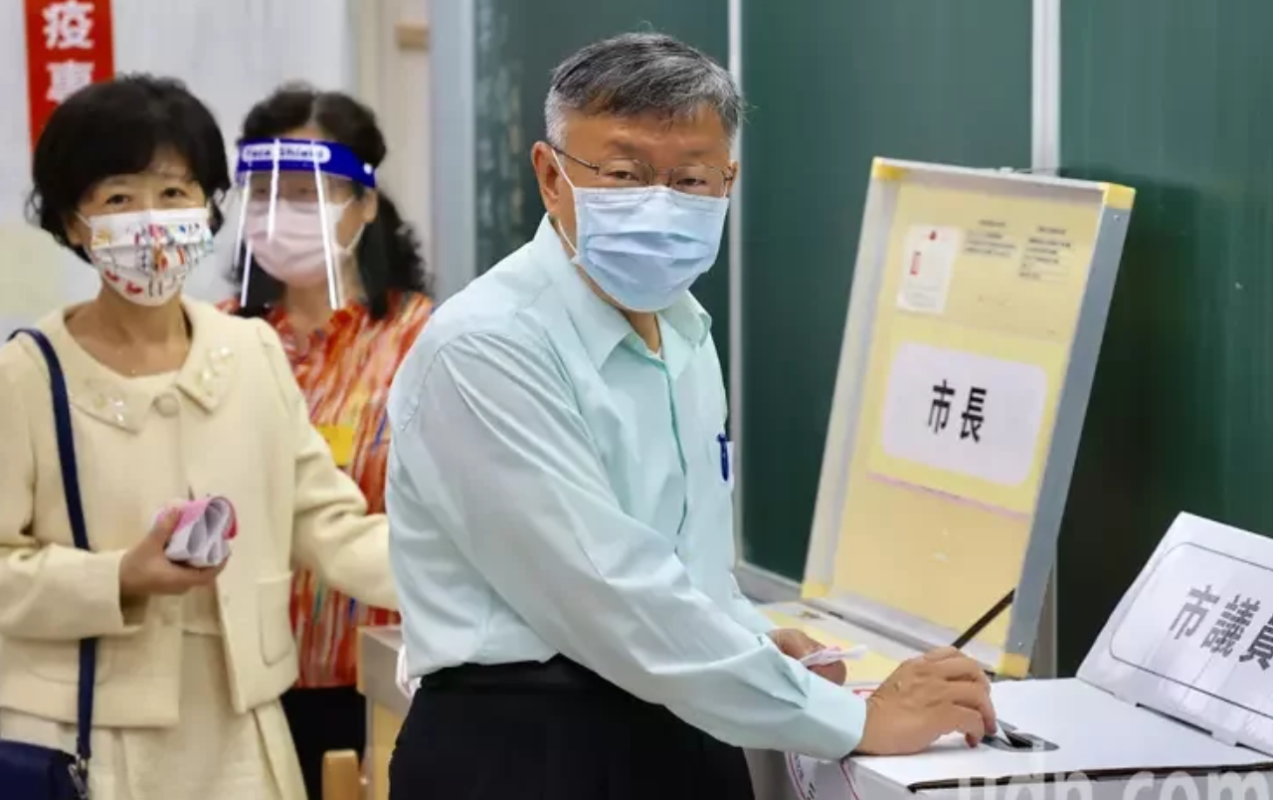 台灣民眾黨黨主席柯文哲與夫人陳珮琪到投票所投票,柯文哲表示,今天投票不會緊張、保持平常心,相信選民的智慧。