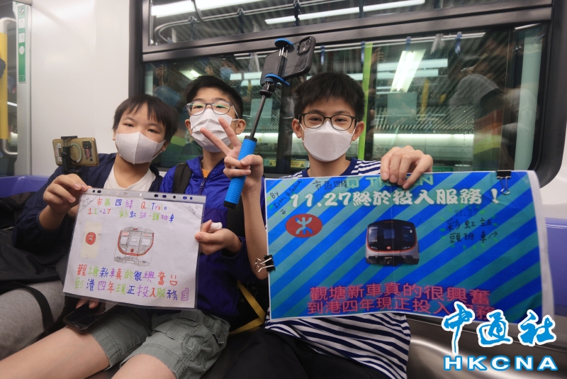 香港港鐵國產新車Q-Train彩虹出發 市民趕搭頭班車分享到: