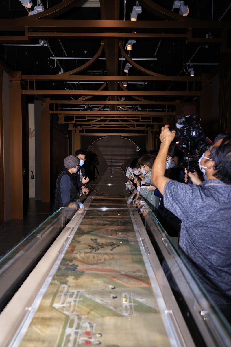 南京博物院研究員曹清(左側左一)和香港文化博物館館長(藝術)鄧民亮共用講解《古代仕女行樂圖》。