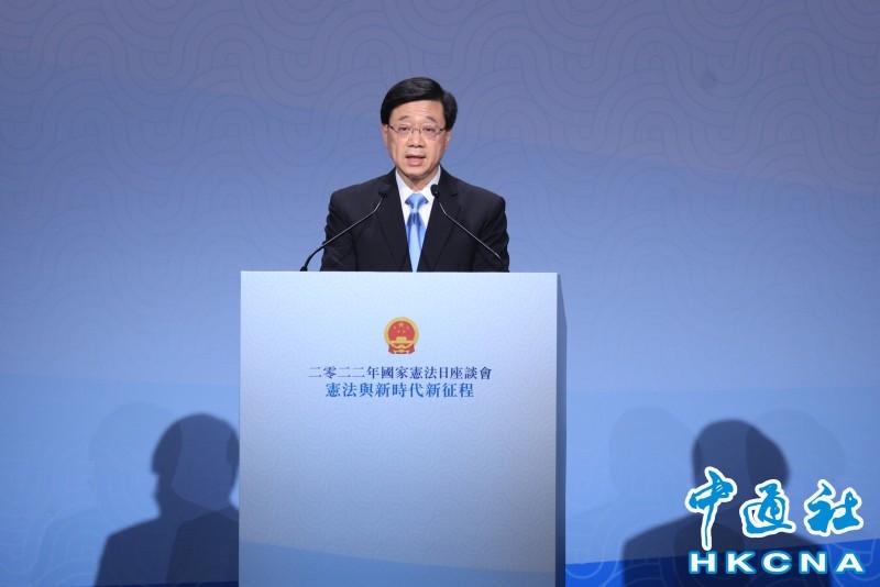 香港特區行政長官李家超出席座談會並致辭 香港中通社圖片 香港中聯辦主任駱惠寧致辭時,就發揮憲法對香港“一國兩制”實踐的引領保障作用,指出香港各界必須自覺維護憲法權威;必須堅持把維護國家主權、安全、發展利益作為最高原則;必須弘揚以愛國愛港為核心、同“一國兩制”方針相適應的主流價值觀。 座談會主題演講部份邀請全國港澳研究會會長鄧中華發表演講;對談環節則由勵進教育中心理事會主席范徐麗泰主持,與全國人大常委會香港基本法委員會副主任譚惠珠和立法會議員李浩然共同探討憲法在新時代新征程下的重要作用。 此外,觀塘民政事務處聯同多個地區團體舉辦“觀塘各界宣傳國家憲法日2022——國旗展示活動”,加強區內青少年的憲法意識,透過展示一面長30米、寬20米的大型國旗,表達各界對國家憲法日的重視。下午,亦舉辦“認識憲法與基本法嘉年華”,超過1000名市民參與活動。 香港特區政府律政司副司長張國鈞出席活動致辭時表示,特區政府通過多種形式開展憲法宣傳教育活動。要向社會弘揚憲法精神,全面推進法治,需要社會不同界別的共同參與。觀塘區公民大使培訓計劃是很好的社區參與例子,希望30位完成培訓的“公民大使”將學會的知識在社區內宣揚。(完) 【編輯:李冉】