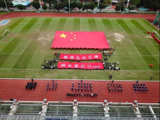 香港特區保安局12月4日舉行憲法四十周年升旗儀式。 香港中通社圖片 參與升旗儀式的紀律部隊包括香港海關、政府飛行服務隊、懲教署、消防處、警務處,以及入境事務處。各紀律部隊及輔助部隊屬下的青年團隊聯同其他青少年制服團體組成的9個方隊亦參與儀式。 儀式由紀律部隊聯合樂隊的軍樂操揭開序幕,9支青少年隊伍步操進場後,紀律部隊儀仗隊、護旗方隊以中式步操進場進行升旗儀式,現場奏唱國歌,政府飛行服務隊直升機在空中敬禮。 升旗後,護旗方隊進行下半旗儀式,全體出席人士默哀,以悼念已故前國家主席江澤民逝世。 下午,香港特區政府聯同香港中聯辦合辦的“國家憲法日”座談會在香港會議展覽中心舉行。約650名來自社會不同界別的人士出席座談會。 香港特區行政長官李家超在座談會上致辭時表示,必須堅定不移維護憲法、切實和全面準確貫徹落實憲法和基本法所保障的“一國兩制”,保持香港長期繁榮穩定。