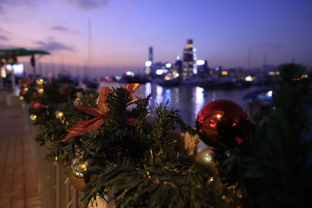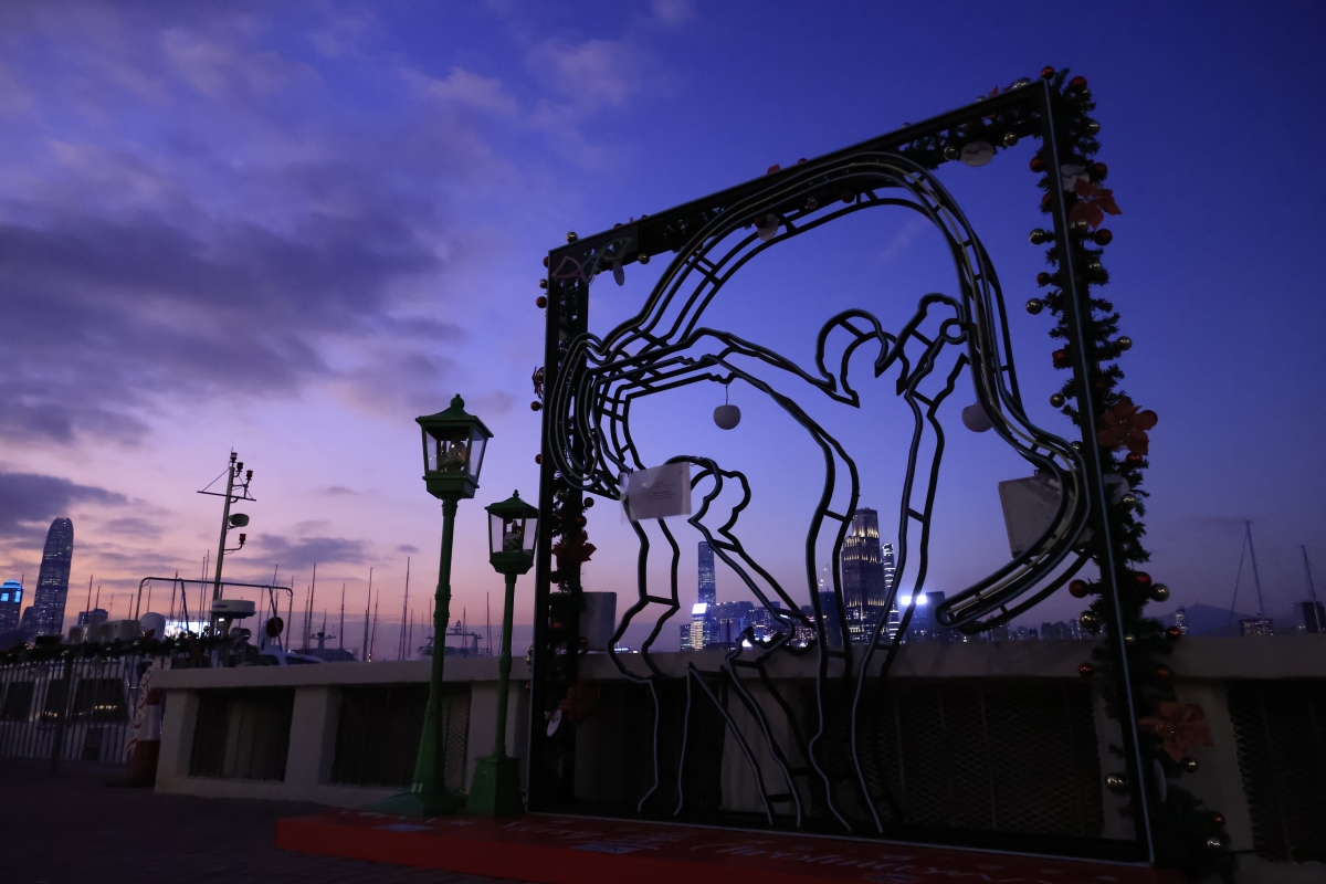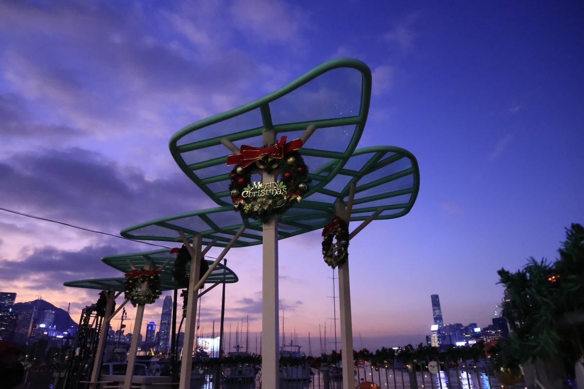 香港中通社圖片 曹文毓攝 香港維港沿岸及荃灣7個海濱休憩空間的聖誕燈飾裝置亦暫停亮燈一天。