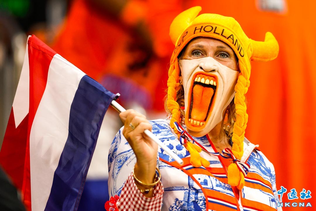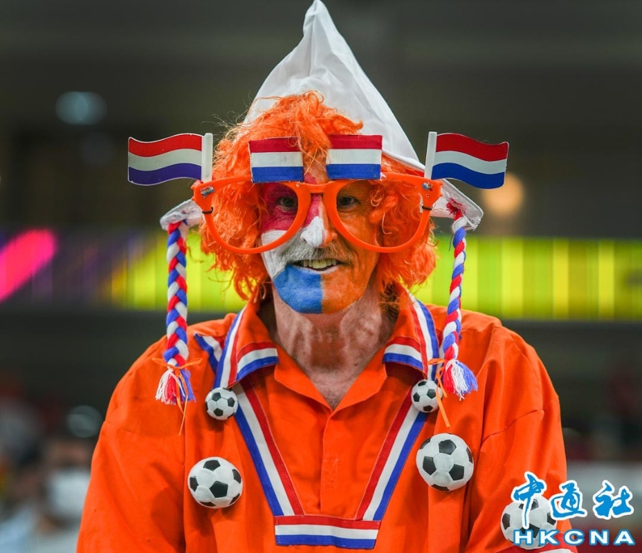 荷蘭隊球迷為球隊吶喊助威喊一天都不會累。荷蘭隊在世界盃淘汰賽中3:1輕取美國,率先闖進8強。