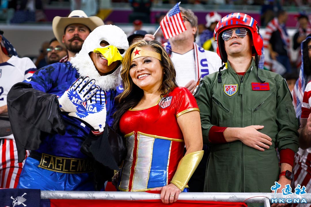 裝扮成美國超級英雄美國球迷,可惜英雄救不了美國隊。美國在世界盃淘汰賽中1:3不敵荷蘭隊,無緣8強賽。