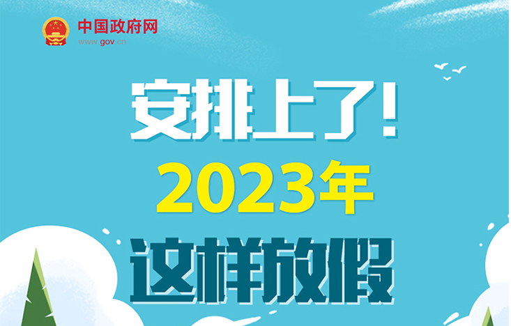 香港新聞網12月9日電 國務院辦公廳昨(8日)發文,2023年元旦、春節、清明節、勞動節、端午節、中秋節和國慶日放假調休日期的具體安排。 一、元旦:2022年12月31日至2023年1月2日放假調休,共3天。 二、春節:1月21日至27日放假調休,共7天。1月28日(星期六)、1月29日(星期日)上班。 三、清明節:4月5日放假,共1天。 四、勞動節:4月29日至5月3日放假調休,共5天。4月23日(星期日)、5月6日(星期六)上班。 五、端午節:6月22日至24日放假調休,共3天。6月25日(星期日)上班。 六、中秋節、國慶日:9月29日至10月6日放假調休,共8天。10月7日(星期六)、10月8日(星期日)上班。 2023年的中秋與國慶日剛好重合,假期長達8天。(完) 【編輯:錢林霞】