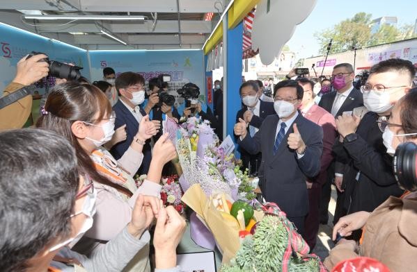 夜幕臨近,不少上班族也在下班後匆匆趕來。有長者表示,會讓子女周末再陪自己逛逛,多置辦些物品食品。 歡慶之餘不忘防疫,入場者必須使用“安心出行”及測量體溫;場內要求佩戴口罩、禁止飲食。不過,隨著政府放寬入境檢疫限制,“黃碼”人士亦可以進入工展會場內,人數限制為1.5萬人。 廠商會會長史立德在開幕禮上致辭時表示,工展會的熱鬧情況令人感受到“香港回來了”,工展會的開辦見證香港經濟起飛,亦展現企業逆境求變的“獅子山精神”。今年工展會規模幾乎回復疫情前水平,反映營商信心逐步恢復,向外界展示“香港回來了”的信息,預計入場人數將達百萬。 特區行政長官李家超、政務司司長陳國基、保安局長鄧炳強等皆出席開幕儀式。李家超更在工展會內購買了貨品,包括腰果、花菇、懷舊雞仔餅及合桃酥等等。(完) 【編輯:李明珠】