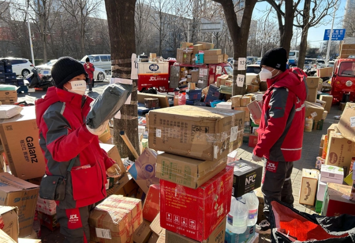 1000名京東快遞小哥馳援北京 圖源:人民網 據澎湃新聞、《中國青年報》報道,受疫情和“雙12”購物節影響,中國各地居民近期的網購量增加。不過,“一增一減”的情況加劇快遞配送面臨的壓力。