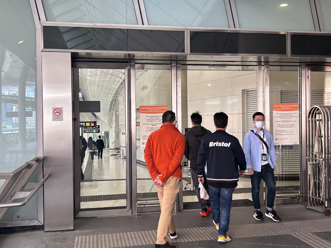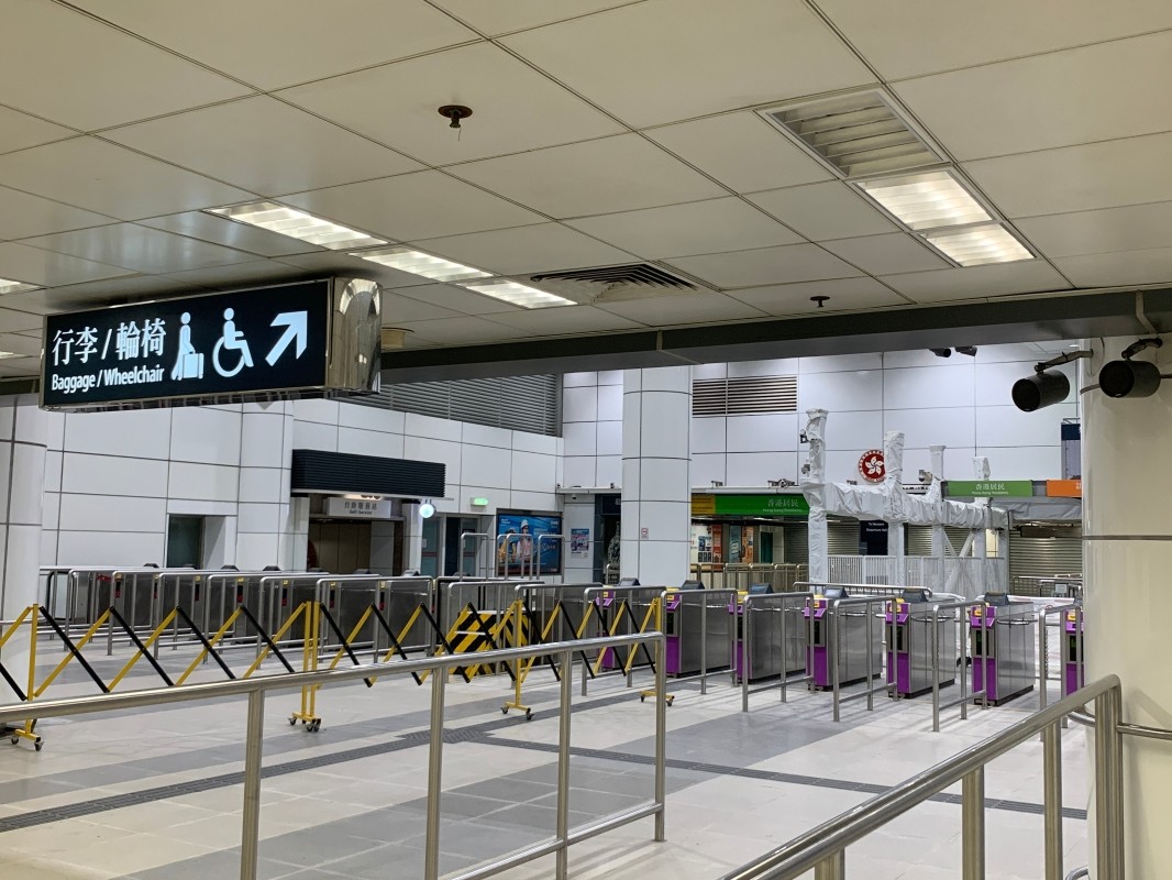 香港中通社記者23日在西九龍高鐵站外所見,通往高鐵售票處的閘門仍緊閉,但高鐵站已有部分出入口開放予工作人員進出,門外張貼“車站暫時關閉”的告示,戶外有保安員駐守。相比起以往,高鐵站附近的工作人員明顯增加;現場的港鐵職員向記者表示,近月才調回站內工作。