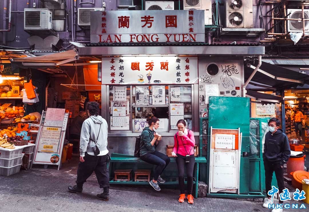“沒喝過蘭芳園,就等於白來香港。”蘭芳園是香港現存最古老的港式奶茶鋪之一,創始於1952年,其絲襪奶茶作為香港文化的一種符號,旅遊旺季時需要大排長龍。(香港中通社記者 曹文毓攝)