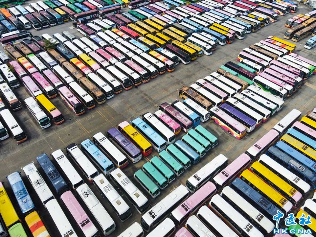 12月29日,香港葵涌碼頭附近的停車場仍塞滿大量的旅遊巴士。因疫情原因,大量旅遊巴士2020年初在香港葵涌碼頭附近停泊,被稱為“巴士墳場”。隨著香港與內地通關在即,旅遊巴士及跨境巴士將可重新上路。近日,陸續有旅遊巴士從“巴士墳場”移出維修,為通關做準備。(香港中通社記者 許其皓攝)
