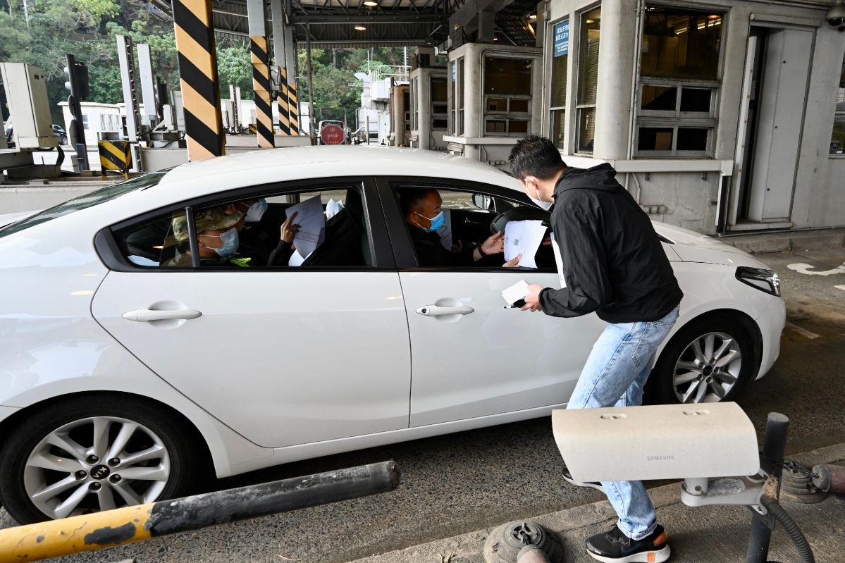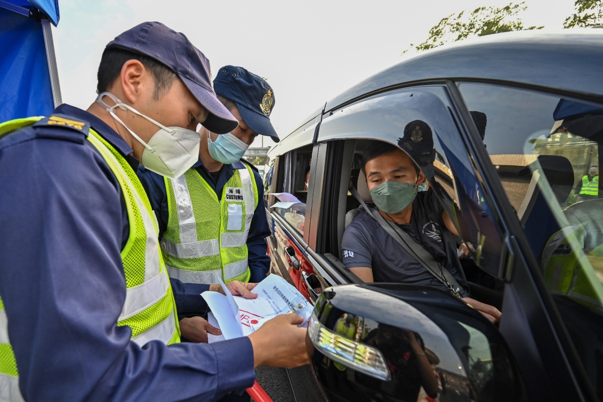 香港海關人員與模擬旅客於文錦渡管制站進行演練。 演習中模擬旅客以私家車於文錦渡管制站過關。 為確保旅客可更快捷暢順地過關,演練模擬北上旅客的分流程序,包括要求所有旅客出示出行前48小時進行的核酸檢測陰性結果證明,及如屬需預約人士,要求他們同時出示成功預約登記證明。此外,演練亦測試港方人員與內地邊境人員能否保持迅速緊密溝通,以應對口岸區域一旦出現人流或交通擠塞,需要啓動溝通協調機制的情況。