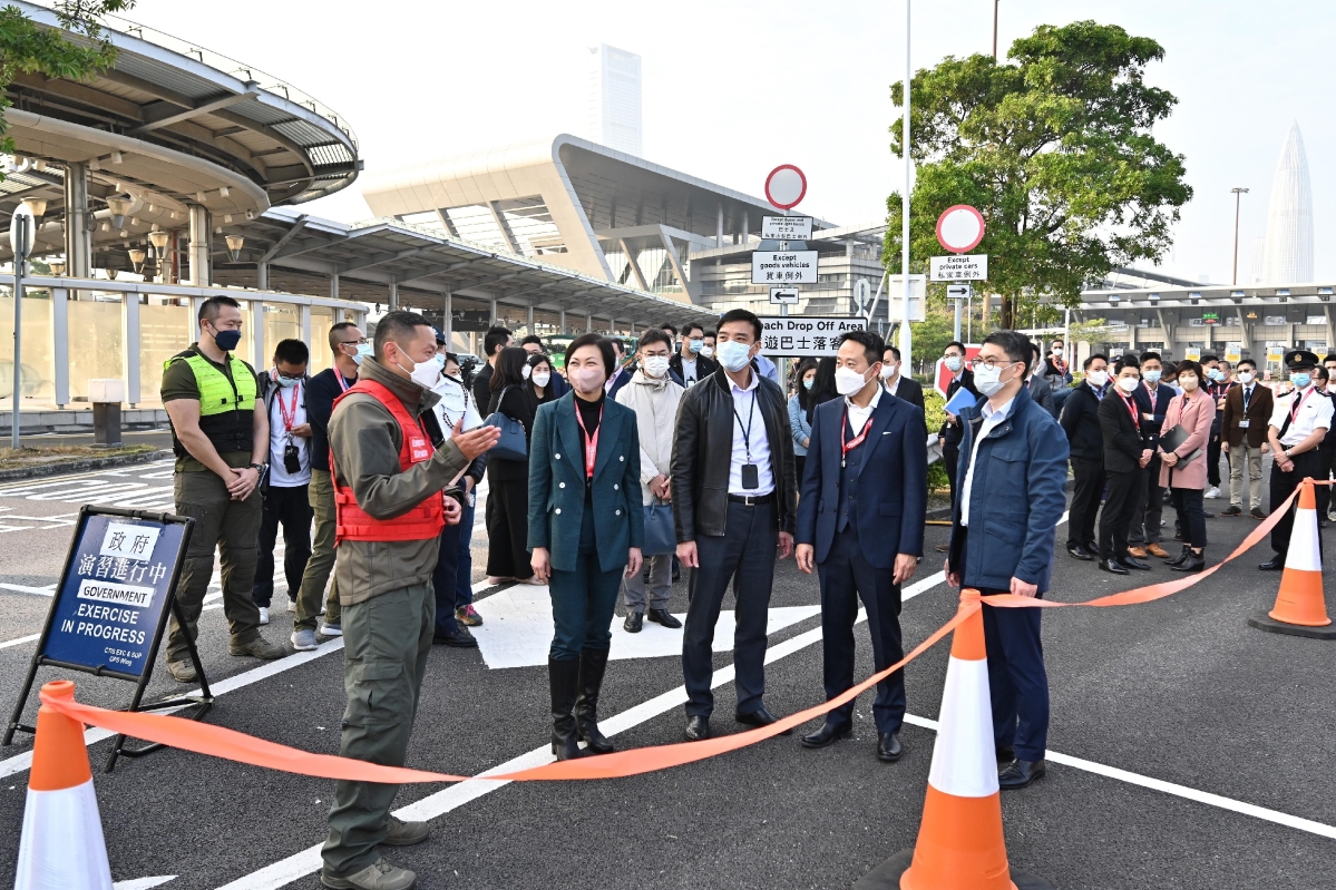 香港新聞網1月6日電 因應內地與香港本周日(8日)開始有序恢復兩地人員正常往來,保安局昨日(5日)率領紀律部隊於文錦渡管制站、落馬洲支線/福田管制站及深圳灣管制站進行演練,確保通關初期口岸運作暢順。