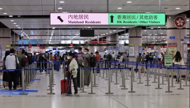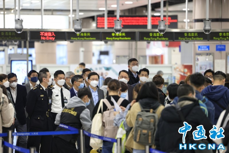 香港新聞網1月8日電 香港今日(8日)起與內地恢復首階段免檢疫通關,涵蓋七個口岸。今早在落馬洲支線口岸,約300名市民在過境大堂未開閘前已在閘外等候,當中不少人拖著行李箱,現場秩序大致良好。 入境內地前,旅客需要掃描二維碼,向內地海關申報個人資料、過去7日健康情況等,過程大約5分鐘。據傳媒報道,有工作人員向入境內地的人士送上福袋,內有水果和口罩。 在深圳福田口岸,陸續有從香港入境的人士離開關口,外圍有多架私家車輪候接送,深圳交通警在現場維持秩序。