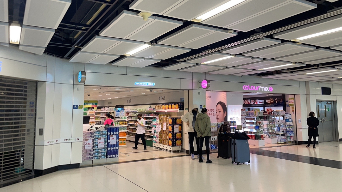 落馬洲地鐵站內的商店(香港中通社圖片) 地鐵站內,不少店舖已經準備好滿滿貨架的貨品,迎接準備過關的顧客。