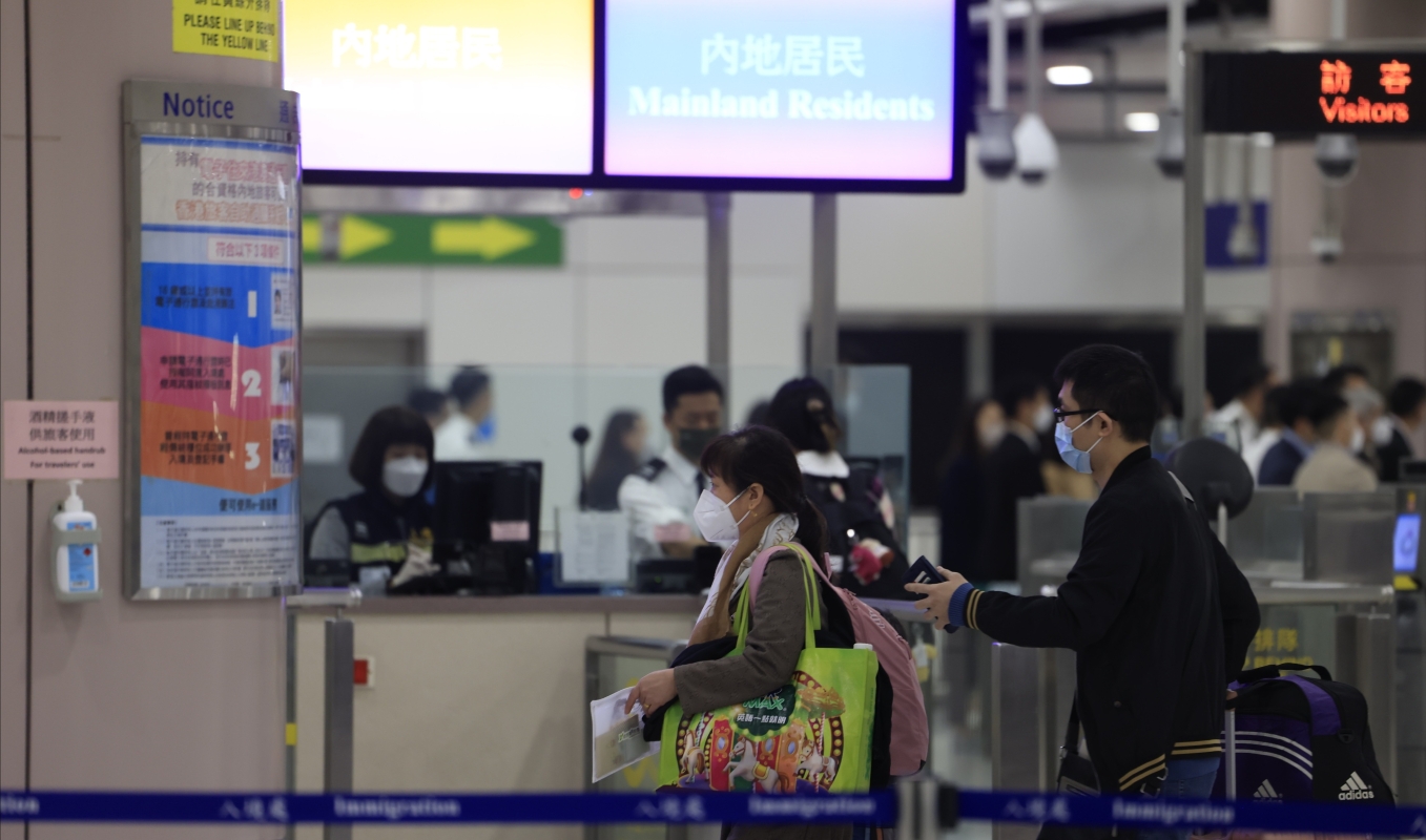入境櫃台前旅客有序出入(香港中通社圖片)