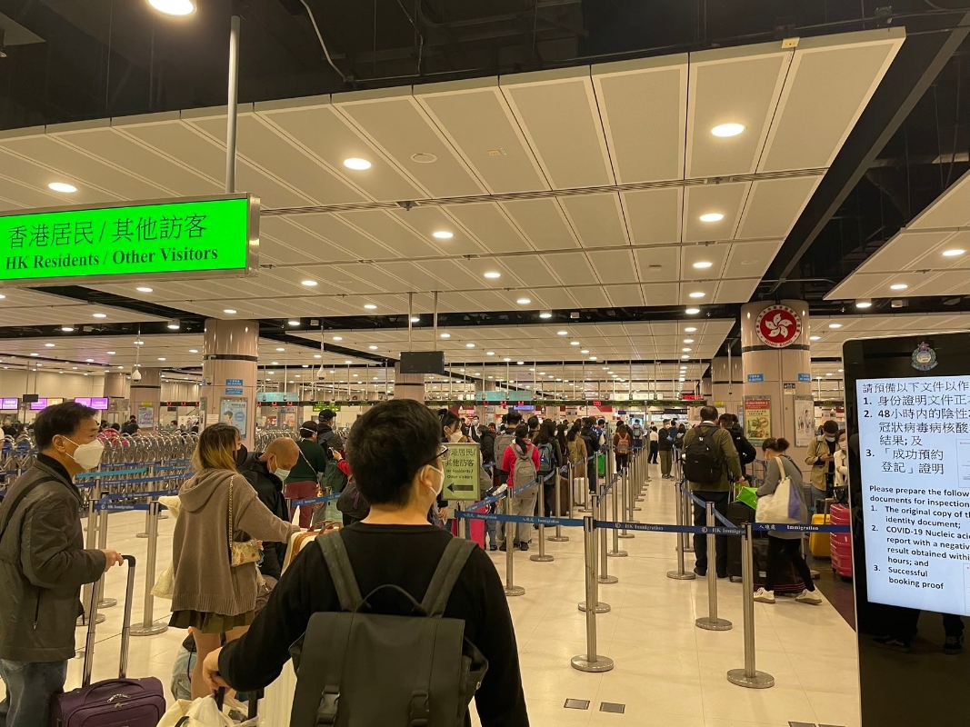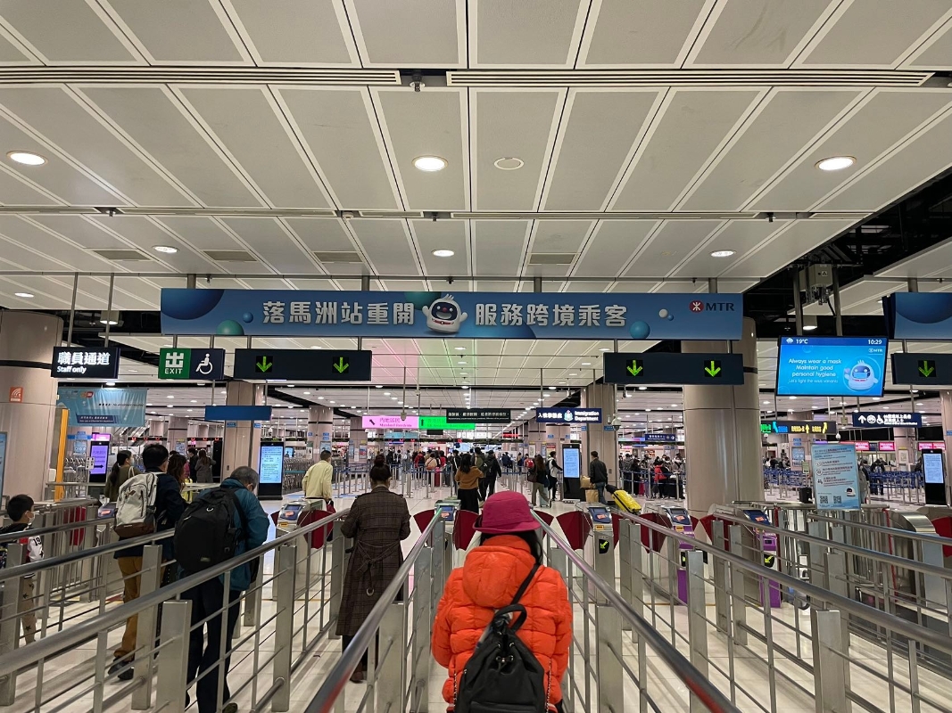 香港新聞網1月8日電 今天,香港和深圳通關了。香港中通社記者早早預約了從香港落馬洲過關深圳福田口岸,帶你走一遍全流程,快收藏轉發給有需要的小夥伴吧! 落馬洲是本次三個開放的陸路口岸名額最多的,有3.5萬個名額,且銜接兩地交通也最方便,因此也是大多數人選擇的過關口岸。 交通:乘搭來往金鐘及落馬洲站的東鐵綫即可到達,全程一小時內。 到達:在月台跟著前往福田口岸的指示牌,搭扶手電梯下一層就到了離境大堂,有工作人員派發印有港鐵圖標的口罩。港鐵閘口外是入境處限制區,旅客出閘後即可排隊過關,這是“闖關”的第一關,一旁亦設有港鐵等待區,供需折返的市民使用。