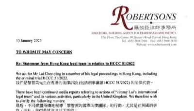 香港中通社1月10日電 香港壹傳媒創辦人黎智英涉違香港國安法,年內將開審。綜合香港媒體10日報道,黎智英的海外法律團隊去信英國政府,要求與英國首相緊急會晤,商討確保黎智英獲釋的方法。 黎智英涉違香港國安法,獲批聘英國御用大律師來港辯護,行政長官李家超早前向中央建議提請全國人大常委會釋法。