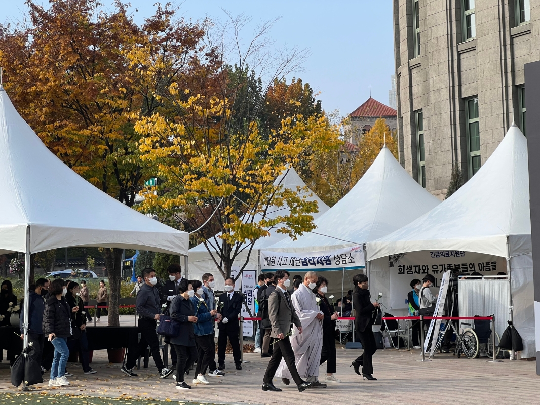 韓國民眾悼念梨泰院踩踏事故遇難者。圖源:香港中通社 這起慘案事發時逢韓國放寬新冠疫情限制措施以來的第一個重大節目,大約10萬人湧入夜店林立的梨泰院地區慶祝萬聖節,結果大批人群在一條狹窄、有坡度的小巷擠得水洩不通,造成多名外籍人士在內的158人不幸當場死亡或送醫後不治,其中多數為20多歲的女性。事後有1名倖存者因為沉重精神打擊和網路霸淩而輕生,使得慘劇遇難者增至159人。 2023年1月13日,韓國警察廳梨泰院事故特別調查本部公佈了事故調查結果,向檢方移交23名涉案公務員,其中6人被捕。(完) 【編輯:王軼南】