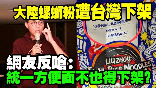 (台灣購物平台“蝦皮”上 所有螺獅粉已下架) 不僅如此,依現行規定,大陸制的粉條類產品如中式麵條、寬平麵條、米粉條等,也都通通不准輸入,所有實體通路及電商平台需立即下架。 看來,別說“螺獅粉”,想嗦個大陸的面都不行了。 民以食為天,看到民進黨當局如此大動作干預民眾享受“口福”,台灣民眾急了。有網友留言表示:“在台灣連吃一口螺獅粉都沒有自由?”、“跟一個螺螄粉包裝上的俏皮話計較?”“因一句話封殺所有粉條?”還有網友留言:“統一方便麵不也得下架?”“麻將請去掉五筒(武統)”等,以此反嗆螺螄粉下架事件。